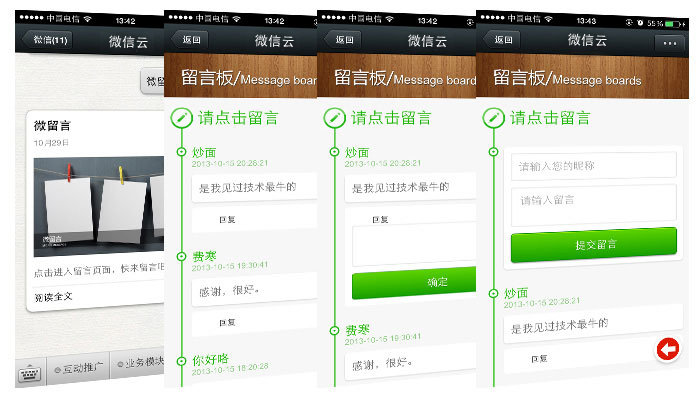 "微留言"是一種能為商家?guī)砭薮蟮纳鐣?huì)化流量的功能,允許留言可以被分享于留言者的朋友 圈、騰訊微博 和發(fā)送給好友,這意味著留言可以被無數(shù)的粉絲分享,用戶對(duì)商家進(jìn)行實(shí)時(shí)且客觀的評(píng)價(jià),真實(shí)的社交環(huán)境保證了留言的客觀性和有效性。"微留言"的使用商家只 需做好產(chǎn)品和用戶服務(wù)即可,隨著口碑的傳播,消費(fèi)者將源源不斷。